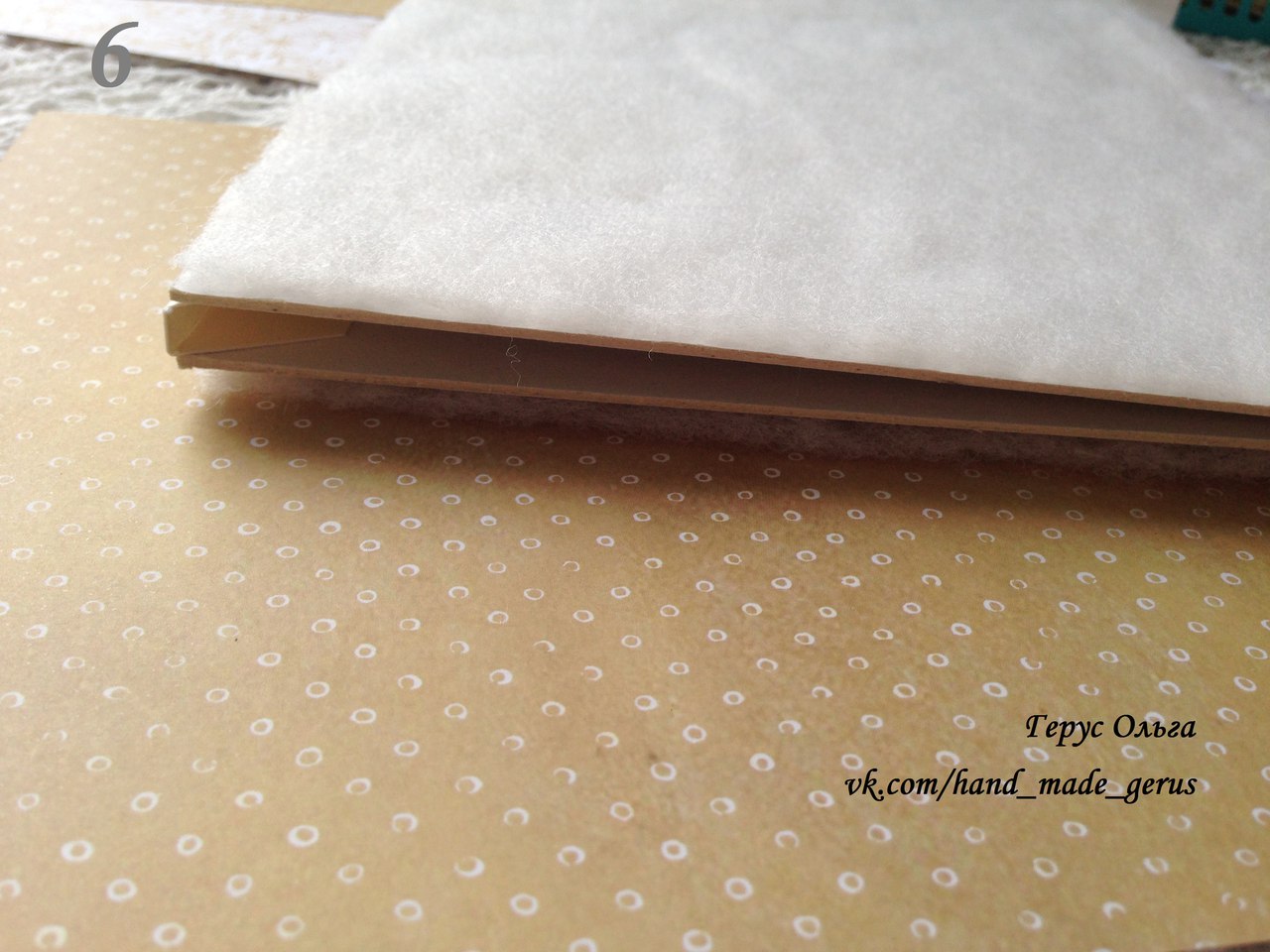2. Отрезаем 2 куска синтепона 20 х 27 см, наклеиваем его на пивной картон с помощью клея-карандаша. Таким образом получаются две внешние стороны будущей папочки: